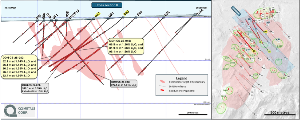 - CS25-038: Widest interval of 66.5 m at 1.55% Li2O and 58.9 m at 1.09% Li2O.